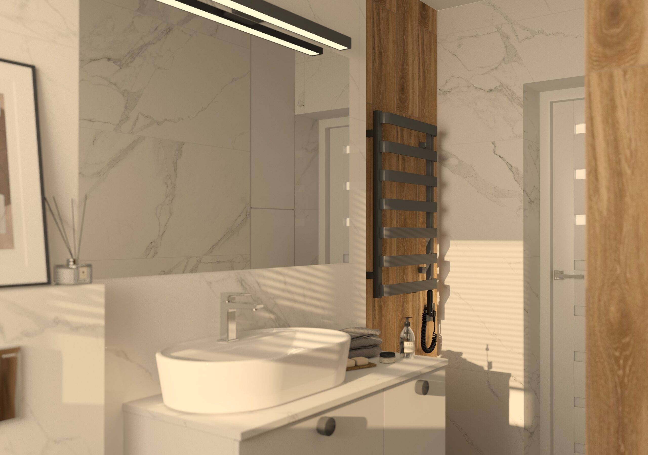 STYLOWA ŁAZIENKA: METALICZNY BLASK I CIEPŁO DREWNA W HARMONIJNEJ ARANŻACJI