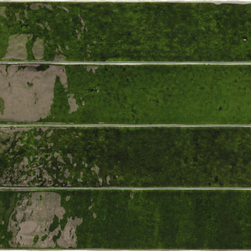 Zielona płytka ścienna w formie cegiełki z kolekcji Menorca. Format 6,5x32,8 cm, błyszcząca i lekko pofalowana powierzchnia podkreślają głębię koloru. Idealna do łazienki, kuchni i dekoracyjnych ścian w nowoczesnych oraz retro aranżacjach.