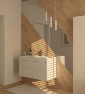 STYLOWA ŁAZIENKA: METALICZNY BLASK I CIEPŁO DREWNA W HARMONIJNEJ ARANŻACJI