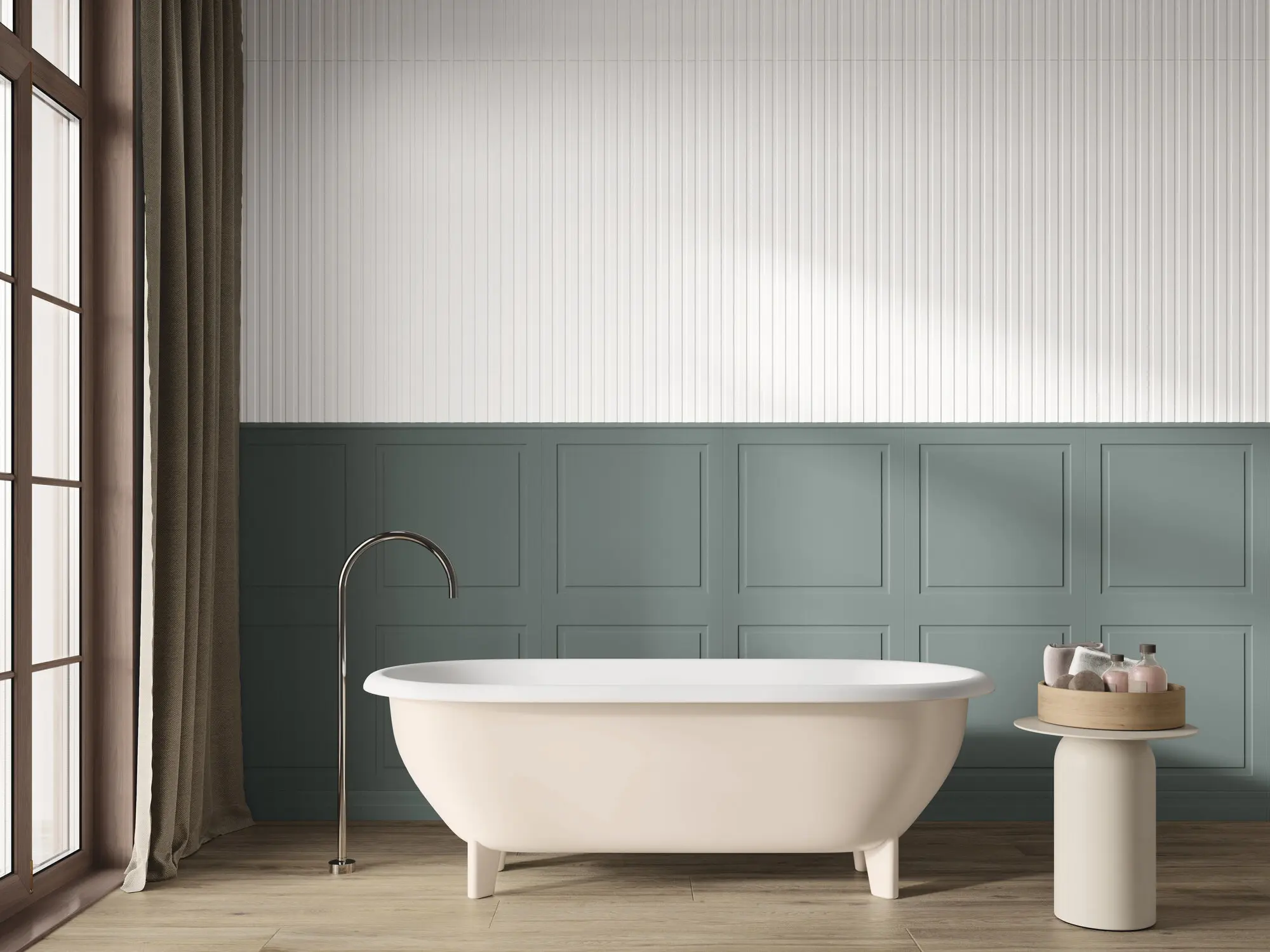 Chloe Bianco 60×120 to elegancka płytka ścienna o matowej, strukturalnej powierzchni z pionowymi żłobieniami. Jej śnieżnobiały kolor oraz rektyfikowane krawędzie sprawiają, że jest doskonałym wyborem do nowoczesnych łazienek, salonów oraz przestrzeni komercyjnych.