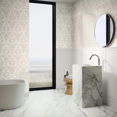 Biały kolor płytek optycznie powiększa przestrzeń, nadając jej lekkości i świeżości. Uniwersalna estetyka sprawia, że Bellagio Sorico Bianco idealnie komponuje się z wieloma stylami wnętrzarskimi, takimi jak nowoczesny, klasyczny, glamour, skandynawski czy minimalistyczny. Świetnie prezentuje się jako gładkie tło dla bardziej dekoracyjnych elementów, ale również w połączeniu z innymi płytkami z kolekcji Bellagio, pozwalając na tworzenie spójnych i eleganckich aranżacji.