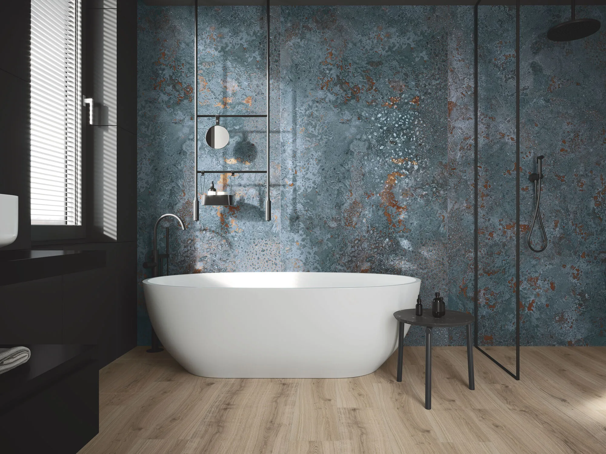 Płytka BALDOCER BORA-BORA NATURAL 60×120 to propozycja dla osób ceniących industrialny szyk w odważnym wydaniu. Jej wzór wiernie oddaje fakturę postarzanego metalu, a głęboki odcień niebieskiego nadaje całości unikalny, chłodny charakter. Subtelne przetarcia i metaliczny połysk wprowadzają do wnętrza wyjątkową grę światła, tworząc niepowtarzalny klimat, który podkreśla nowoczesną aranżację.