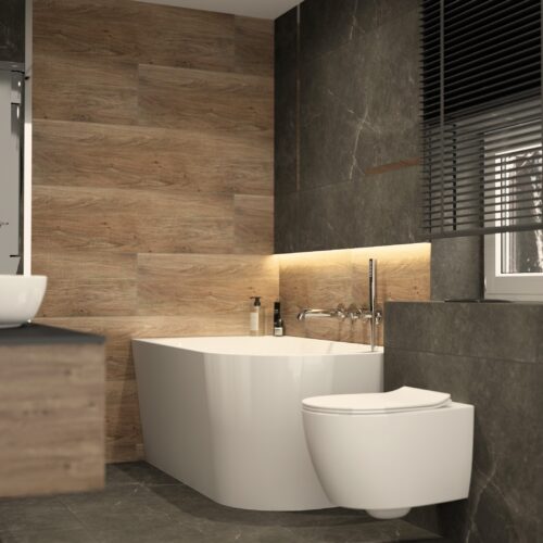 Płytki Durstone Heritage Teak w rozmiarze 30×120 cm są idealnym wyborem do różnych typów wnętrz. Płytki w odcieniu Teak, czyli ciemniejszym brązie, będą doskonałą opcją dla klasycznych przestrzeni. W pomieszczeniach, gdzie dominuje biel, szarości i beże, ciemniejsza podłoga stworzy efektowny kontrast, dodając elegancji całej aranżacji.