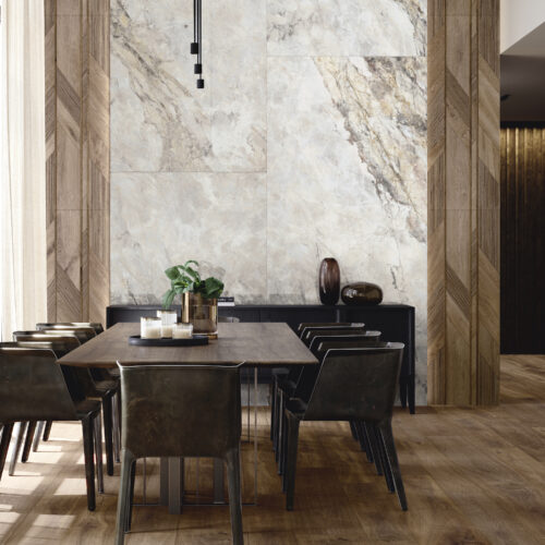 Gres porcelanowy PAR-KER® o realistycznym efekcie naturalnego drewna w ciepłych, autentycznych odcieniach i długich formatach desek. Doskonała, trwała alternatywa dla parkietu – ciepła i elegancka w każdym nowoczesnym wnętrzu.