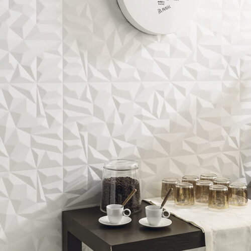 Płytki PORCELANOSA Prisma Blanco Mat to doskonały wybór dla osób, które pragną połączyć nowoczesny styl z elegancją i prestiżem. Dzięki geometrycznym wzorom 3D osadzonym na matowej tafli, te białe, rektyfikowane płytki doskonale sprawdzą się zarówno w kuchniach, jak i łazienkach, nadając każdemu pomieszczeniu wyjątkowy charakter. Ich duży prostokątny format (33,3×100 cm) pozwala na stworzenie wyjątkowych aranżacji – od subtelnego tła po pełnowymiarowy element dekoracyjny. Efekt 3D dodatkowo podkreśla dynamikę wnętrza, a matowa powierzchnia wprowadza elegancję, rozświetlając przestrzeń.