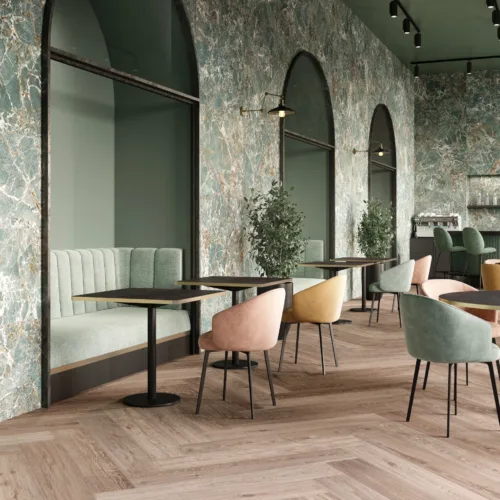 Gres Amazonita Verde to produkt odporny na ścieranie, wilgoć i uszkodzenia mechaniczne, co czyni go świetnym wyborem nie tylko do domów, ale również do wnętrz komercyjnych. Uniwersalność kolekcji sprawia, że płytki pasują zarówno do minimalistycznych, nowoczesnych przestrzeni, jak i do wnętrz w stylu glamour.