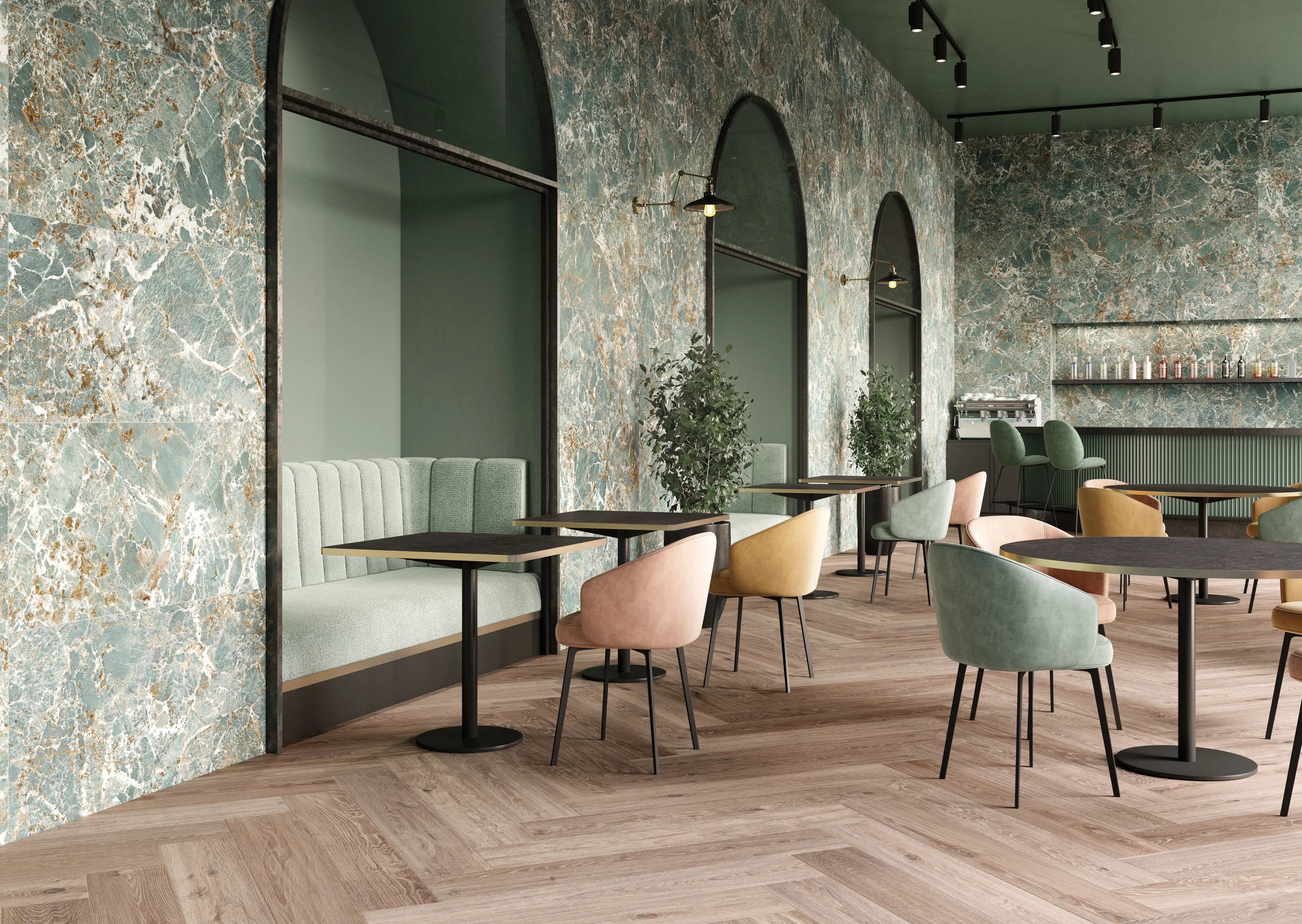 UNDEFASA Amazonita Verde 60×120 to propozycja dla tych, którzy szukają wyjątkowych rozwiązań aranżacyjnych inspirowanych naturą. Płytki odwzorowują elegancki, zielony kamień o subtelnych, jasnych żyłkach, które pięknie przełamują głębię koloru i tworzą efekt delikatnego ruchu na powierzchni. Matowe wykończenie dodatkowo podkreśla szlachetny charakter kolekcji, nadając wnętrzu nowoczesny, ale przy tym naturalny styl.